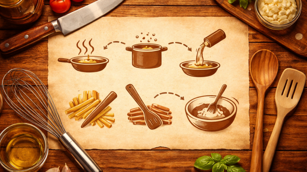 Many recipe instructions rely on short culinary terms that carry precise technical meaning. When those terms are unfamiliar, cooks often interpret them loosely or substitute another technique that seems similar. The dish may still work, but the intended texture, timing, or flavor development can change.