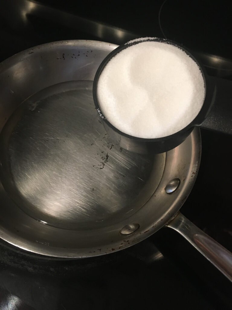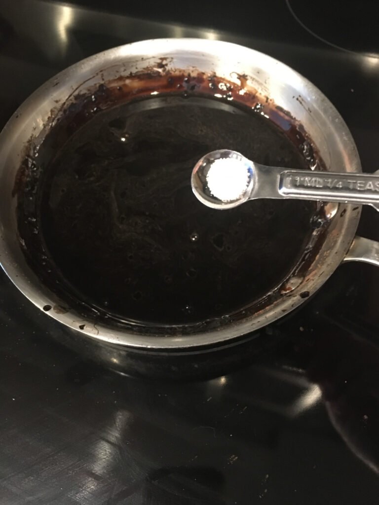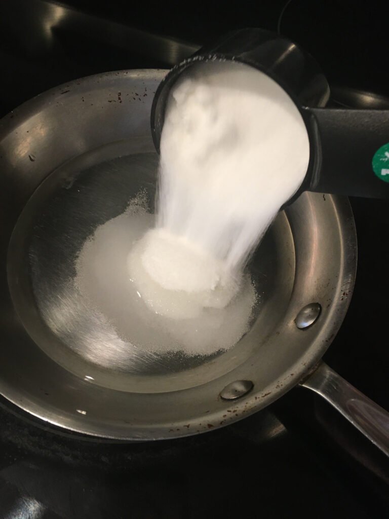 Step 1: To prepare the chocolate syrup, place a small skillet over medium heat and add water, white sugar, unsweetened dark cocoa powder, vanilla extract, and salt.