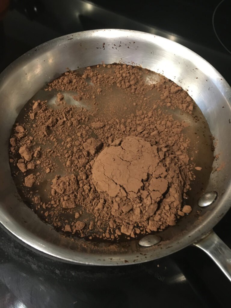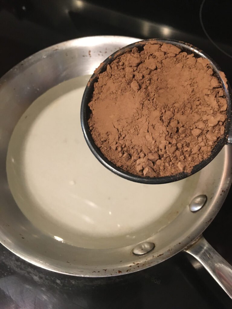- Whisk vigorously until the sugar dissolves and the cocoa powder is thoroughly incorporated, about 2-3 minutes.