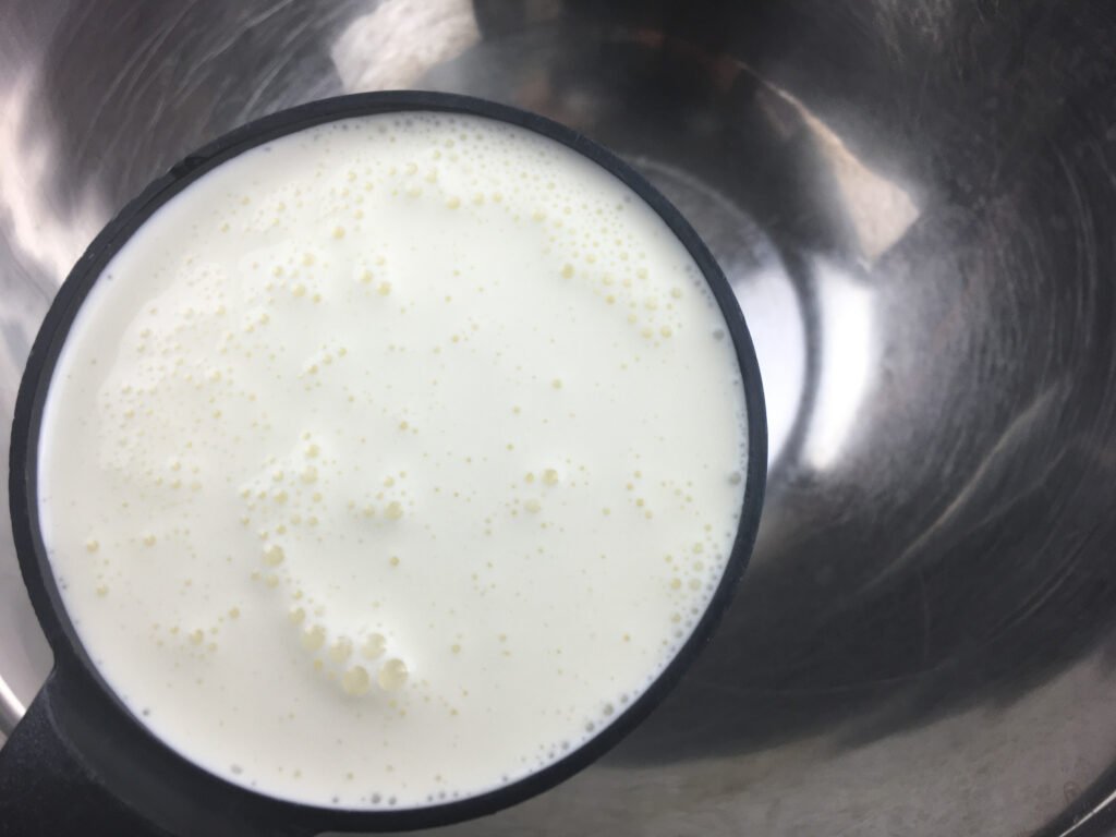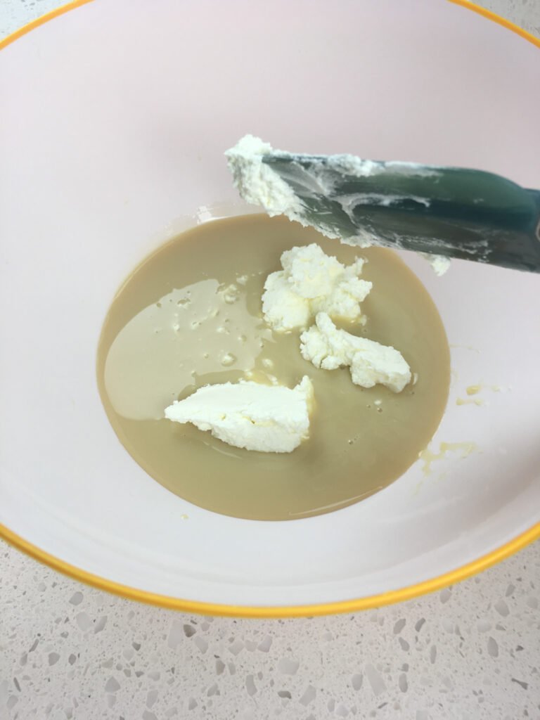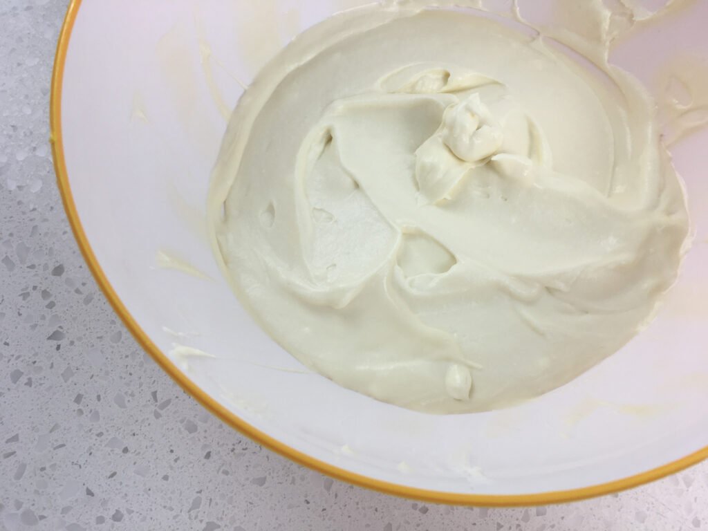 Once whipped, set the bowl aside while preparing the remaining ingredients.