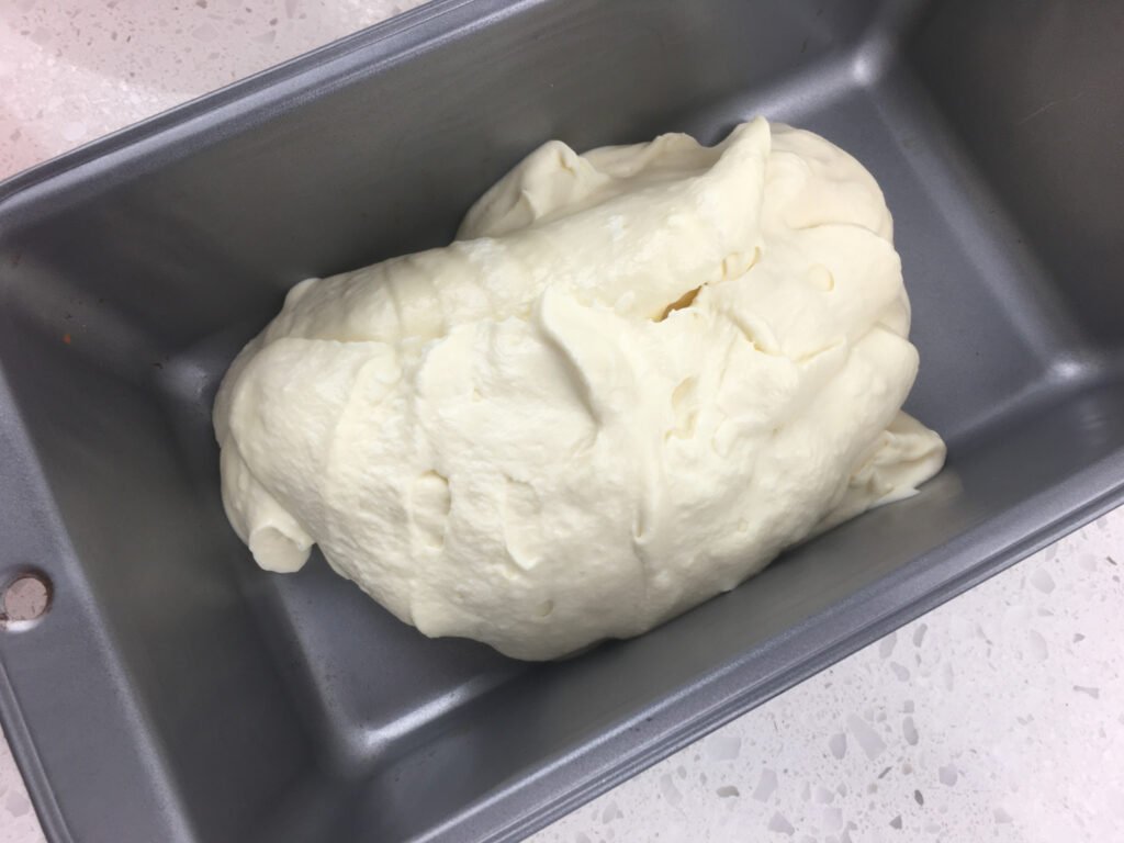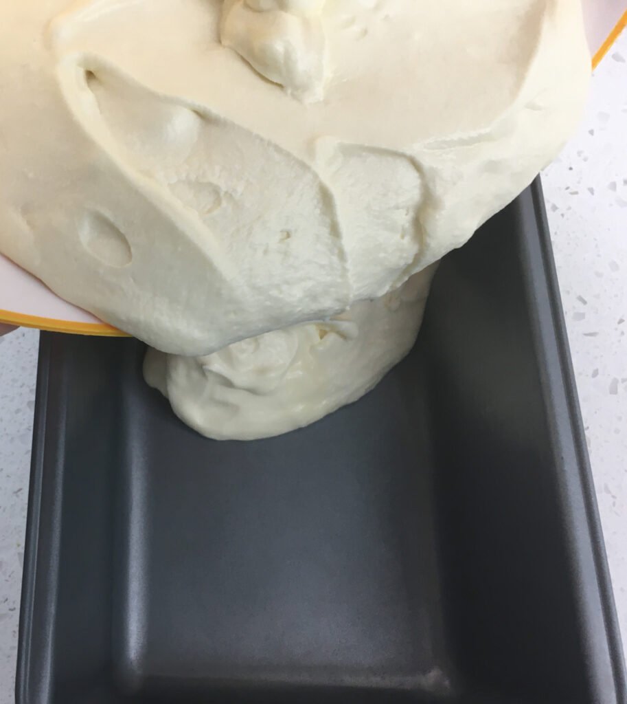 - Pour half the whipped cream mixture into a 9”x5” loaf pan and spread into an even layer.