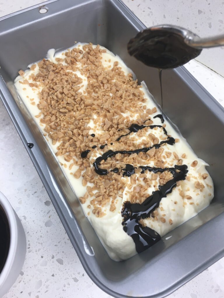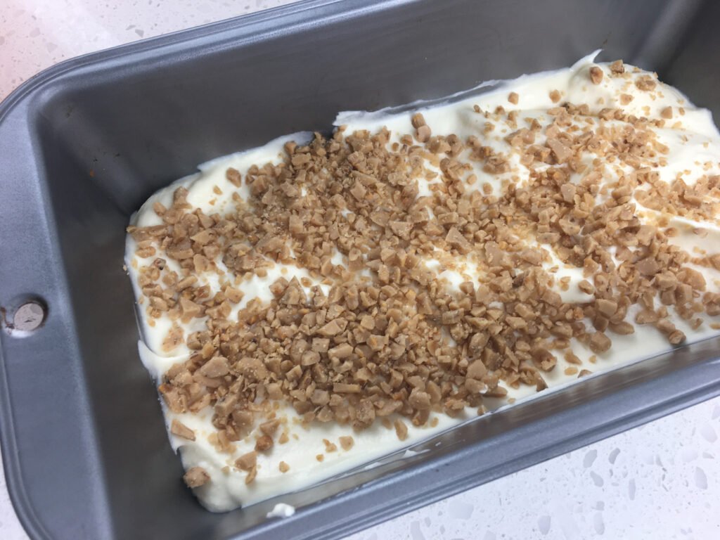 Step 16: Spoon the remaining ice cream mixture over the first layer in the loaf pan.
