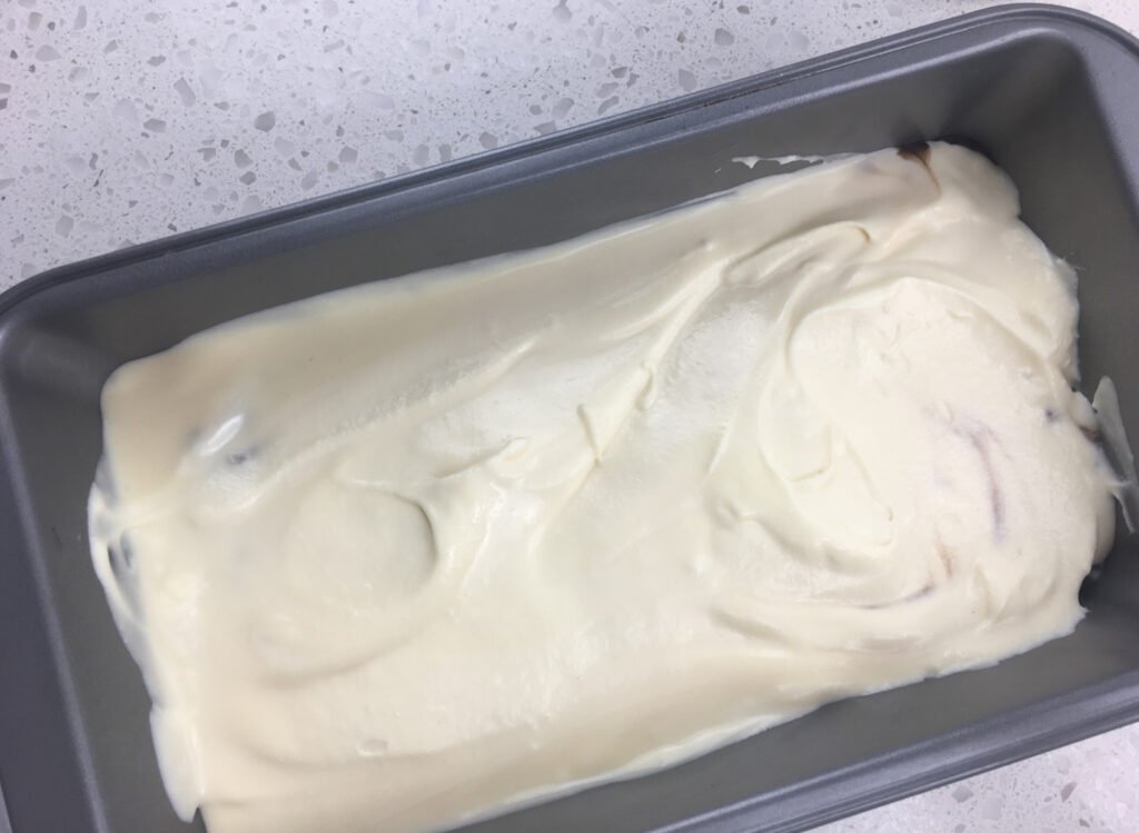 Step 12: Spoon half of the ice cream mixture into a 9” x 5” loaf pan.