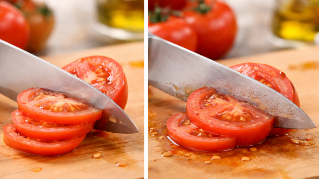 It also helps to notice how much force you are using. If you find yourself pressing harder than usual, adjusting your grip to compensate, or feeling the need to saw back and forth through foods that should cut more smoothly, the knife is no longer performing as it should. In many cases, this is where home cooks adapt to the problem instead of correcting it. They push harder, slow down, or accept messy cuts as normal. That habit makes the issue harder to recognize over time.